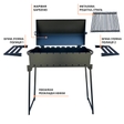 Жарівня мангала-барбекю товщиною 3 мм захищена від впливу високих температур до 800°C завдяки фарбуванню чорною термостійкою емаллю.