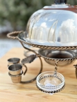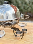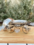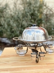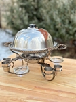 В комплект входить: садж, підставка під вугілля d16 см, піднос d28 см, кришка d26 см, щипці з нержавіючої сталі, 6 чарок з нержавіючої сталі та 3 скляні соусниці. Садж виготовлений із цільної смуги металу, посуд виконаний із харчової нержавіючої сталі.