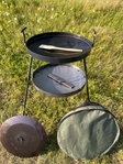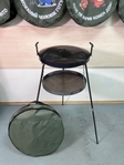Сковорода із диска 40 см з підставкою для вогню. Виготовлена з каленої сталі, міцна та довговічна, не деформується під впливом високих температур. Вона чудово підійде для приготування смачних страв вдома та на природі. Їжа рівномірно просмажується, виходить дуже смачною з ароматом димку. В комплекті іде підставка для вогню на високих розбірних ніжках (метрові ніжки розкручуються навпіл). Вся конструкція розбірна, її можна разом зі сковородою помістити в чохол і зручно переміщати.