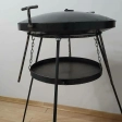 Сковорода із диска 50 см з підставкою для вогню. Виготовлена з каленої сталі, міцна та довговічна, не деформується під впливом високих температур. Вона чудово підійде для приготування смачних страв вдома та на природі. Їжа рівномірно просмажується, виходить дуже смачною з ароматом димку. В комплекті іде підставка для вогню на високих цільних ніжках (метрові ніжки – суцільний прут). Вся конструкція повністю розбірна, зручна в переміщенні та використанні.