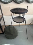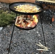 Сковорода із диска 50 см з підставкою для вогню. Виготовлена з каленої сталі, міцна та довговічна, не деформується під впливом високих температур. Вона чудово підійде для приготування смачних страв вдома та на природі. Їжа рівномірно просмажується, виходить дуже смачною з ароматом димку. В комплекті іде підставка для вогню на високих цільних ніжках (метрові ніжки – суцільний прут). Вся конструкція повністю розбірна, зручна в переміщенні та використанні. В чохол поміщається все, крім метрових ніжок.