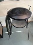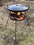 Сковорода ставиться на підставку зверху. Підвіска для вогню на цепках, що дозволяє регулювати її висоту.