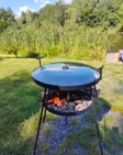 Сковорода із диска 50 см з підставкою для вогню. Виготовлена з каленої сталі, міцна та довговічна, не деформується під впливом високих температур. Вона чудово підійде для приготування смачних страв вдома та на природі. Їжа рівномірно просмажується, виходить дуже смачною з ароматом димку. В комплекті іде підставка для вогню на високих розбірних ніжках (метрові ніжки розкручуються навпіл). Вся конструкція розбірна, тому дуже зручна в переміщенні та використанні.