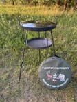 Сковорода із диска 50 см з підставкою для вогню. Виготовлена з каленої сталі, міцна та довговічна, не деформується під впливом високих температур. Вона чудово підійде для приготування смачних страв вдома та на природі. Їжа рівномірно просмажується, виходить дуже смачною з ароматом димку. В комплекті іде підставка для вогню на високих розбірних ніжках (метрові ніжки розкручуються навпіл). Вся конструкція розбірна, тому дуже зручна в переміщенні та використанні.