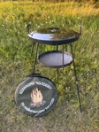 Сковорода ставиться на підставку зверху. Підвіска для вогню на цепках, що дозволяє регулювати її висоту.