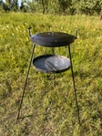 Сковорода ставиться на підставку зверху. Підвіска для вогню на цепках, що дозволяє регулювати її висоту.