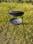 Сковорода із диска 40 см з підставкою для вогню. Виготовлена з каленої сталі, міцна та довговічна, не деформується під впливом високих температур. Вона чудово підійде для приготування смачних страв вдома та на природі. Їжа рівномірно просмажується, виходить дуже смачною з ароматом димку. В комплекті іде підставка для вогню на високих цільних ніжках (метрові ніжки – суцільний прут). Вся конструкція повністю розбірна, зручна в переміщенні та використанні.