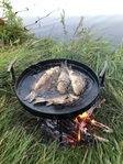 – Під час приготування: готувати рекомендуємо на гарно напалених вуглях, в такому випадку поверхня сковороди буде рівномірно прогріватись, їжа буде чудово просмажуватись та не буде пригорати