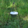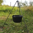 Але як встановити казан, поставити прямо у вогонь? З цією метою слід запастися спеціальним приладдям та приладдям. Звичайно, найкращим варіантом буде скористатися спеціальною підставкою – Треногою. Сферичне дно посуду дуже легко стане в кільце, яке міцно кріпиться до ніжок. Легкий та зручний пристрій забезпечить стійкість конструкції та безпеку при приготуванні їжі.